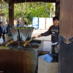 Next we went to the Kushida Shrine. a renowned Shinto shrine. Shinto is an old, Japanese religion that emphasizes the importance of nature, ancestors, and rituals. The shrine is dedicated to three deities associated with protection, prosperity, and harvest. When we visited there was a ritual taking place, with heavenly music.