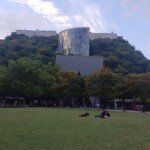 On the map it said central park, so we instantly thinking about a very big park. In fact the park is quite small, but very interesting. The hill you see on the picture below is not what it looks like. The hill is in fact the terraced garden of a modern building, the Acros Fukuoka, a huge concert hall, completed in 1995.
